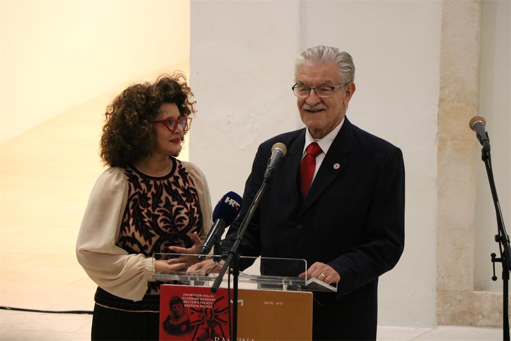 O izložbi je u ime autora govorila Marijana Senkić-Klapan, v.d. ravnatelja Znanstvene knjižnice Zadar, a u ime organizatora okupljenima se obratila Marina Pinjagić Telak, zamjenica izvršnog predsjednika Hrvatskog Crvenog križa. Izložbu je otvorio predsjednik Hrvatskog Crvenog križa prim. Josip Jelić.
