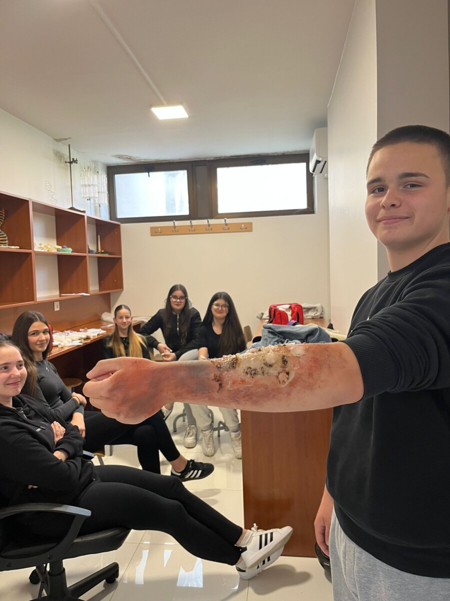 Vrijeme do drugog stupa provjere znanja učenici zajedno prate edukacije u prepoznavanju ozljeda u realističnom prikazu ozljeda koje prezentiraju njihovi mentori kao i predavanjima o praktičnim situacijama unesrećenih.