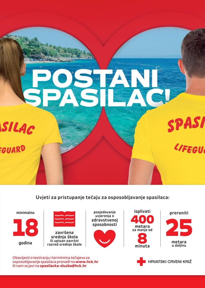 I ove godine Hrvatski Crveni križ provodit će tečajeve za osposobljavanje spasilaca u Zagrebu, Osijeku, Puli, Rijeci, Zadru, Šibeniku, Splitu i Dubrovniku tijekom svibnja i lipnja.
